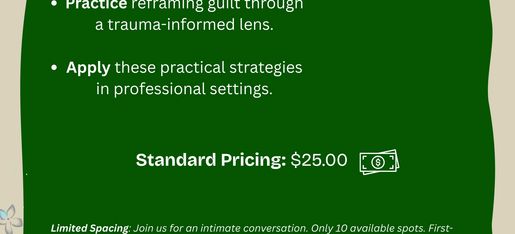 We are your workplace wellness experts. This interactive experience is designed for caring professionals wanting to explore how the messages that they have learned about work growing up have affected their ability to set healthy boundaries and practice self-care. Spaces are limited. Email us for more information on how to join us.