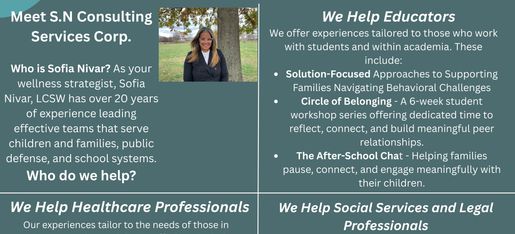 The mission of S.N Consulting Services Corp is to help our clients transform the way that they approach their life and career goals.